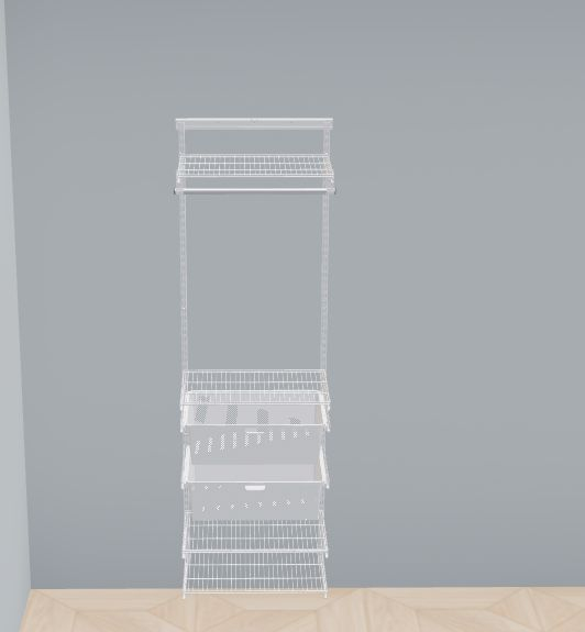 В комплект входят несущие рельсы и навесные направляющие, полки, штанги, аксессуары, крепежные элементы. Можно докупить множество дополнительных компонентов для гардеробной системы.