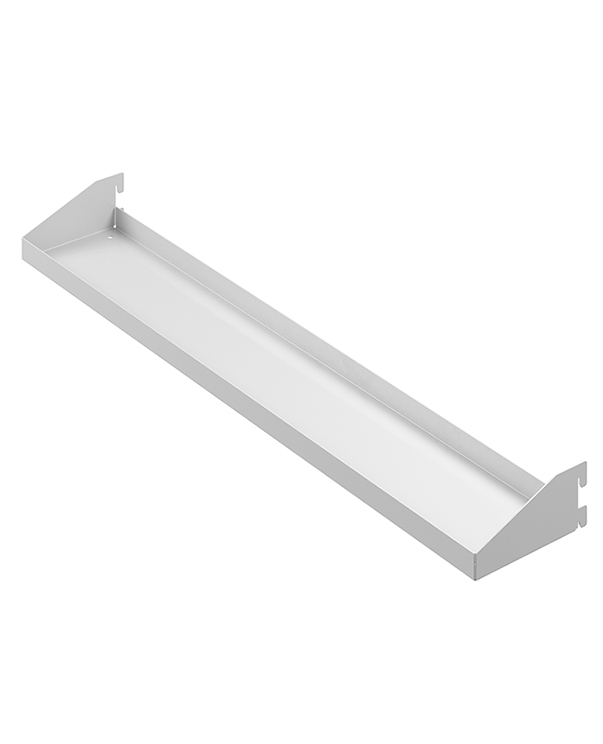 Секционная полка устанавливается между стоек, используется в прихожих, гардеробных комнатах, мастерских, гаражах, ванных комнатах.