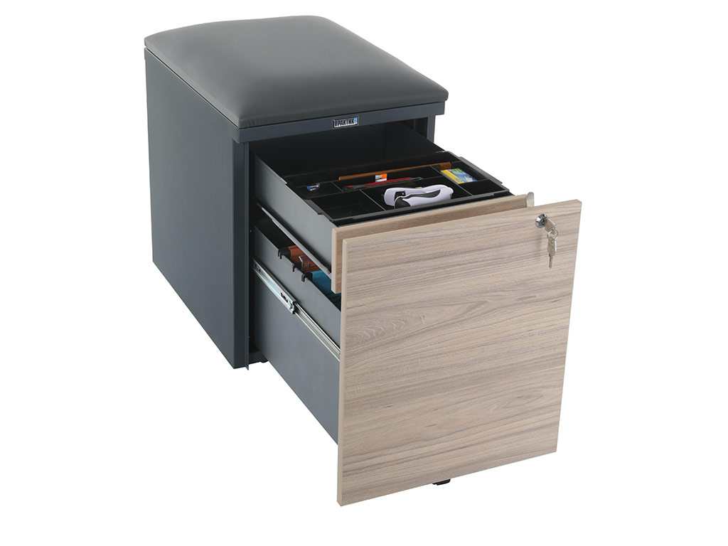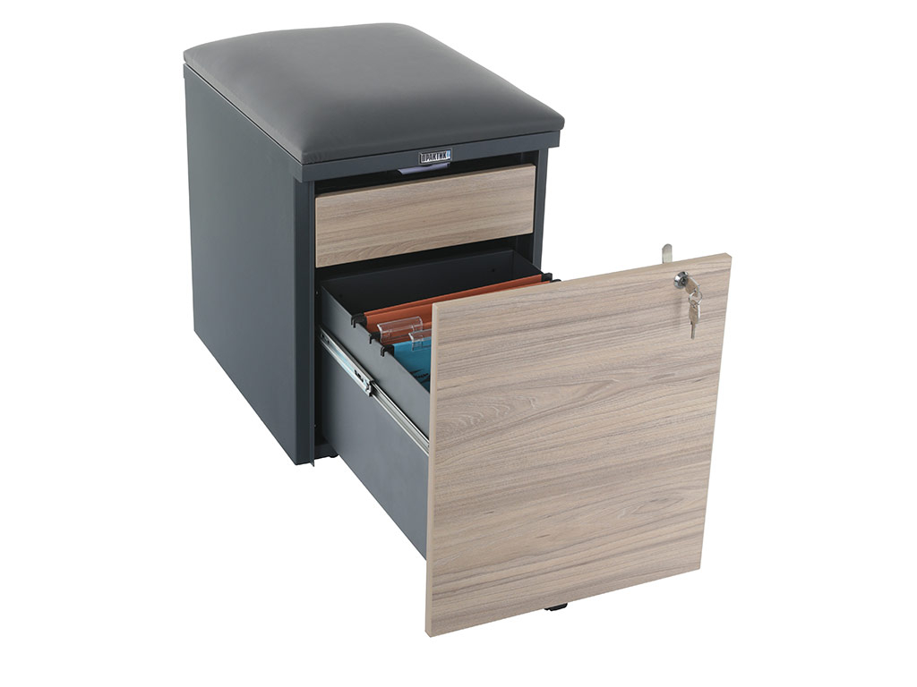 Тумба офисная с пуфом Практикант 2 ящика (антрацит/вяз)