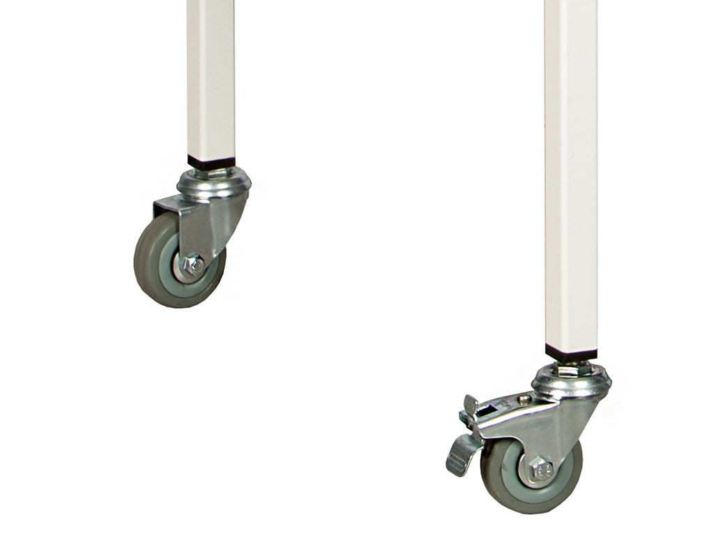 - столик процедурный имеет 4 колеса пластиковых D= 50 мм, два из которых снабжены тормозом