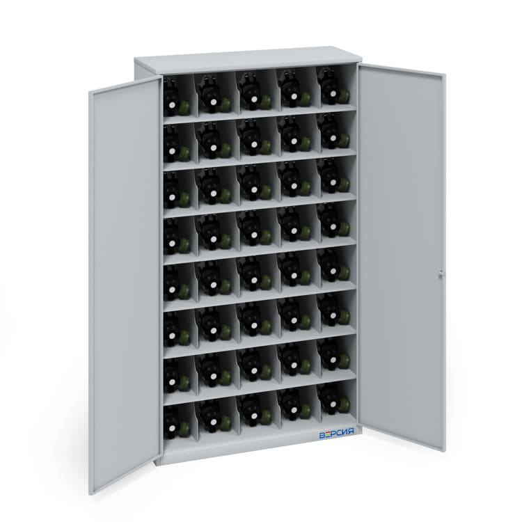 - Конструкция: цельносварная, с двумя дверцами и скошенными полками