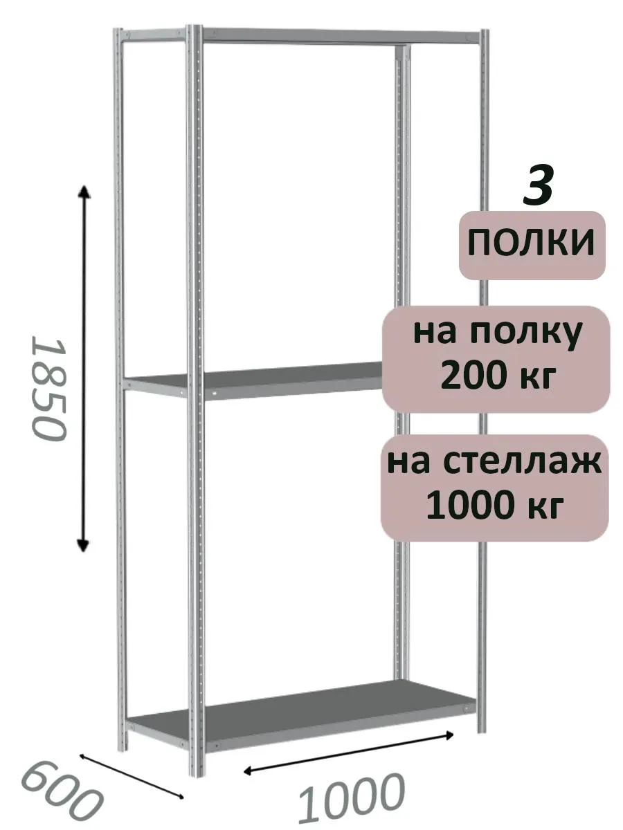 Стеллаж MS Hard 185х100х60, 3 полки