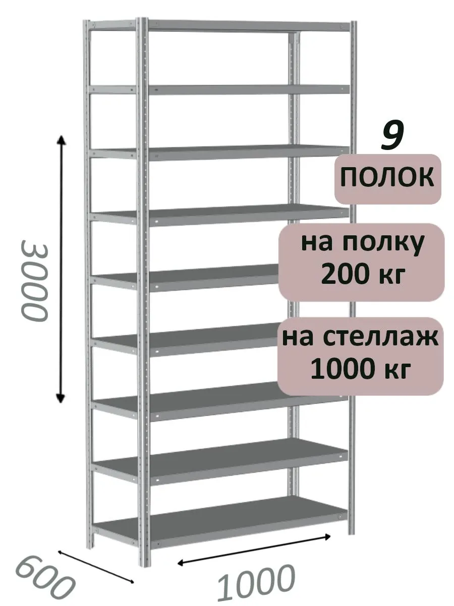 Стеллаж MS Hard 300х100х60, 9 полок