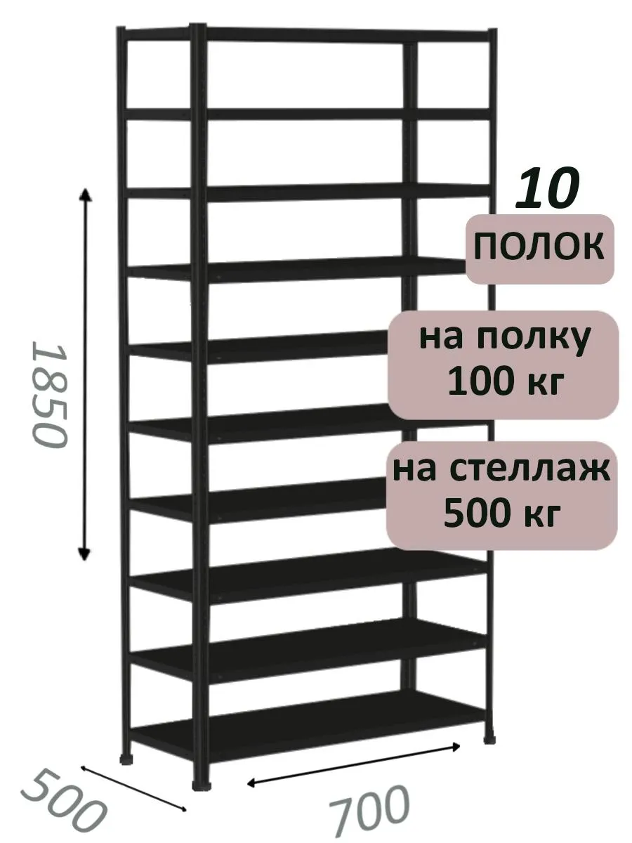 Стеллаж MS Standart 185х70х50, 10 полок, чёрный