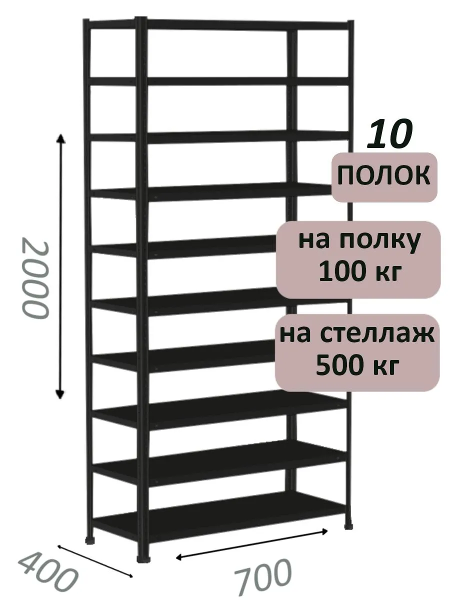 Стеллаж MS Standart 200х70х40, 10 полок, чёрный