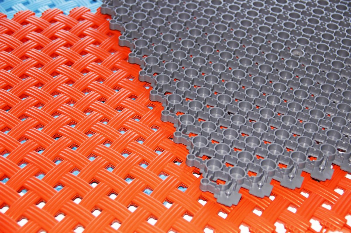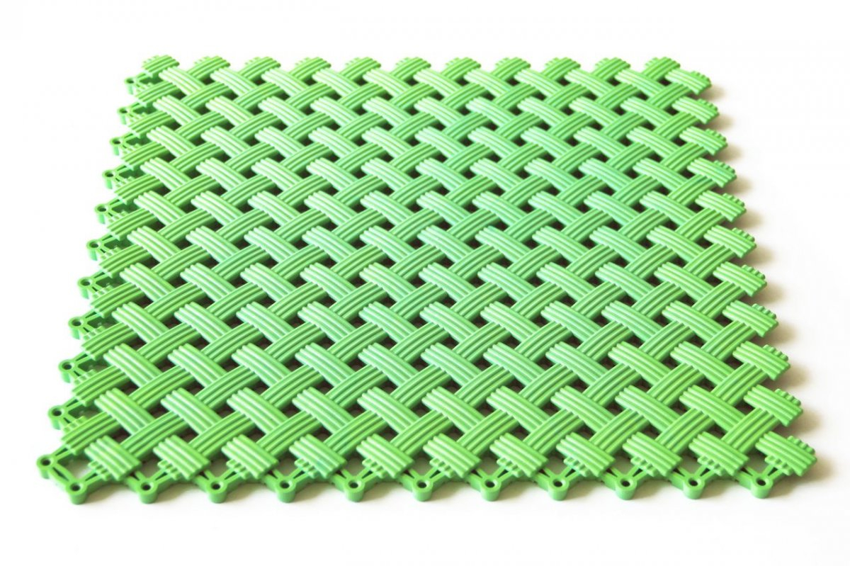 Напольное покрытие, является принципиально новым противоскользящим покрытием для бассейнов, бань и саун. Оно состоит из отдельных модулей, каждый из которых оснащен дренажной системой. Благодаря ей вода свободно стекает в отверстия модуля и удаляется из помещения через слив, протекая под смонтированным покрытием.