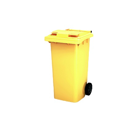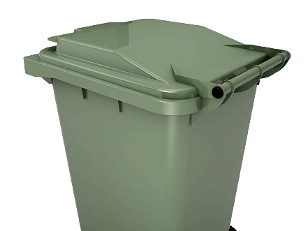 Бак для мусора 240л имеет крышку и два колеса, что облегчает обращение с ним и его передвижение. Он выпускается в четырех цветах (зеленом, желтом, синем и сером).