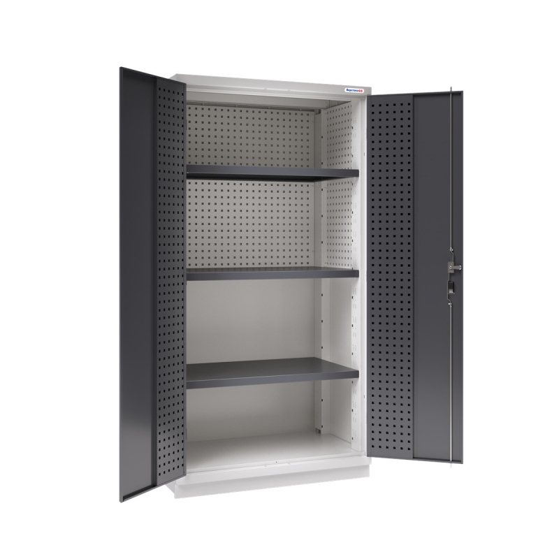 Шкаф инструментальный Fabrik тяжёлой серии представляет собой сборно-разборную конструкцию, предназначен для хранения оснастки, приспособлений и инструмента в мастерских, цехах и других производственных зонах. Шкаф изготовлен из листовой стали и обеспечивает надежное запирание дверей ригельной системой.
