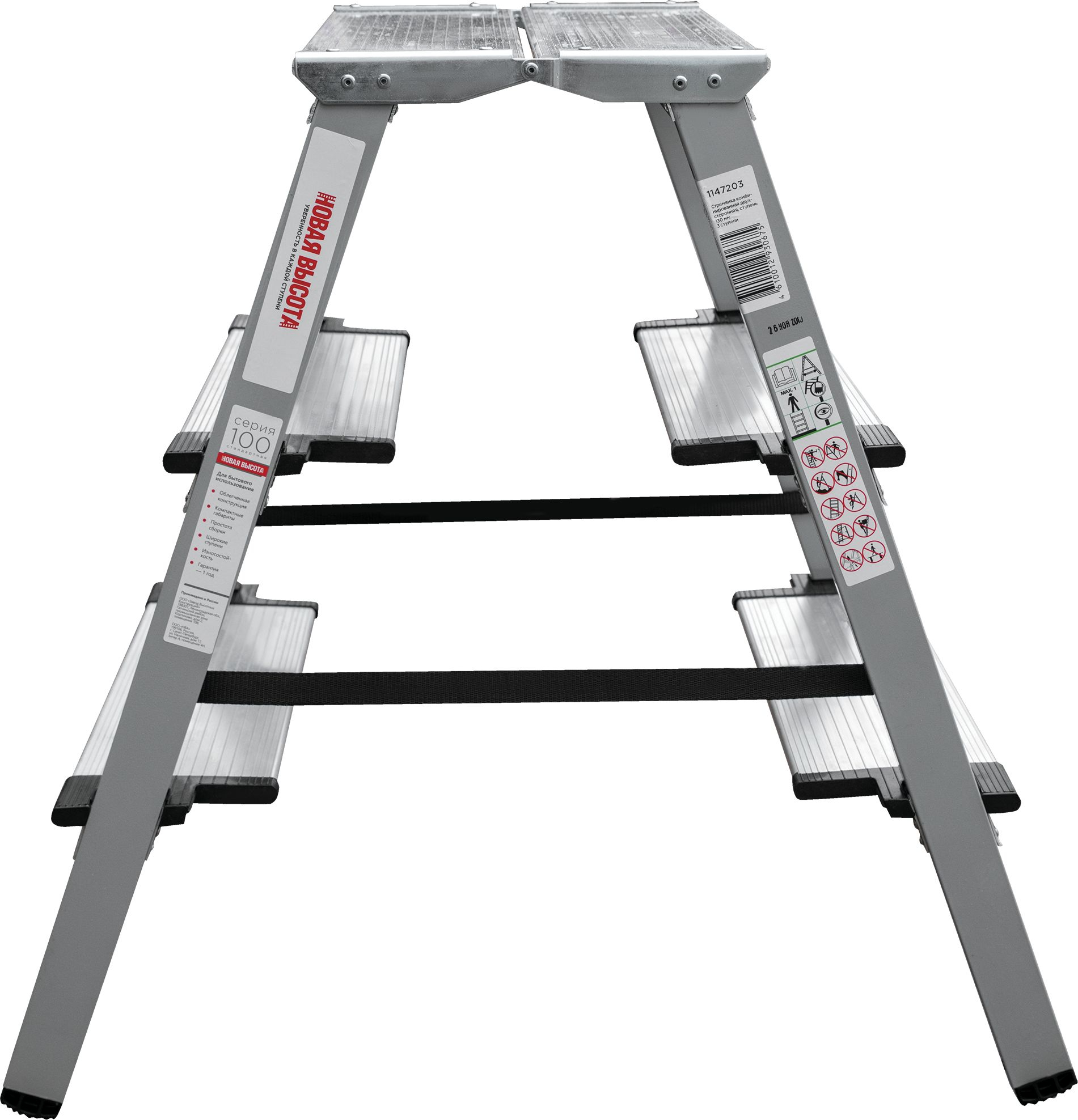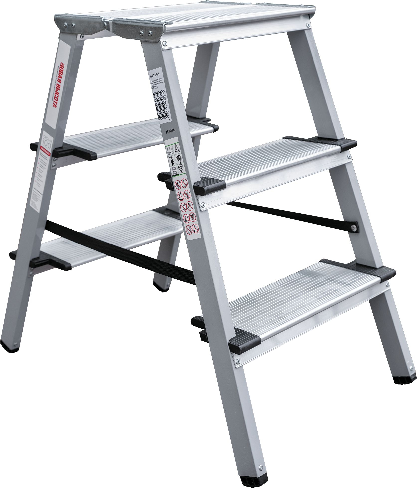 Стремянка двухсторонняя стальная с алюминиевыми ступенями 130 мм и площадкой 350х260 мм NV1147.3