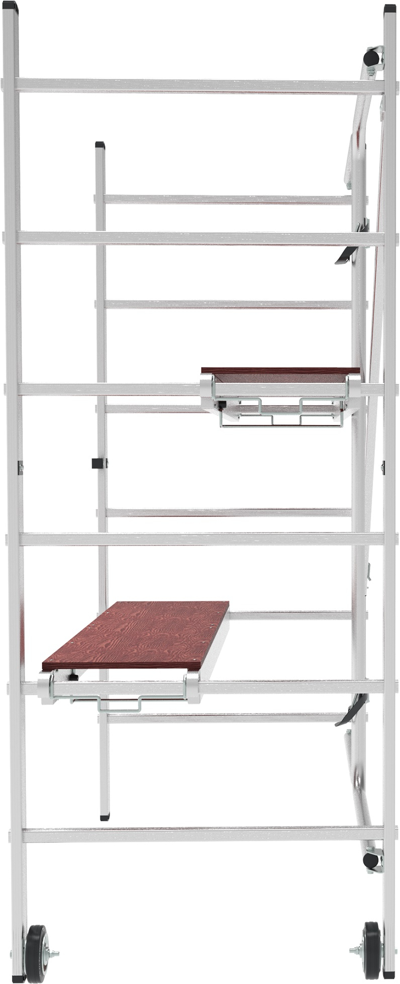 Складная конструкция позволяет легко приводить вышку-туру в рабочее положение и компактно собирать для хранения и транспортировки.