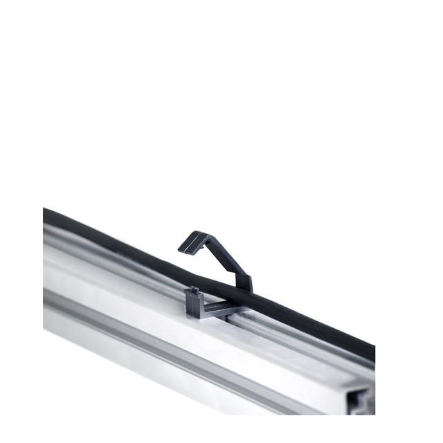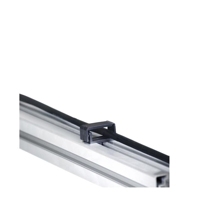 Клипсы для проводов имеют одно отделение в КП-1 и два отделения в клипсе КП-2. Для фиксации клипсы в любом удобном месте по всей длине конструкционного профиля нужно вставить клипсу в паз и повернуть ее на 90 градусов, обеспечив фиксацию клипсы в нужном месте.