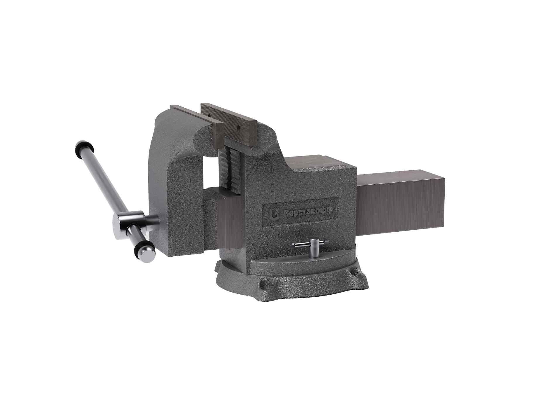 В серию «Мастерская» входят тиски, предназначенные в основном для любительского использования. Даже крупные модели этой линейки весьма доступны, что позволяет меньше оглядываться на бюджет при оборудовании домашней мастерской. При этом модели данной серии в полной мере сохраняют функционал, характерный для профессиональных аналогов: укомплектованы поворотным основанием с двумя фиксаторами, имеют наковальню, основной захват со съемными закаленными стальными губками и трубный с чугунными губками, отлитыми в корпусе.