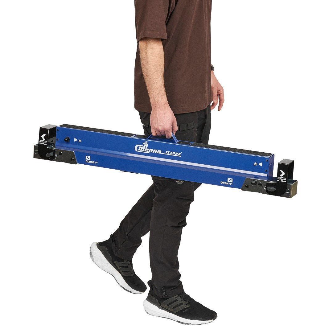 Складные козлы имеют 2 ложемента для распила длинномерного бруса или для установки связывающих брусьев размером 47x100 мм, что позволяет увеличить рабочую поверхность и обеспечивает жесткость конструкции рабочего места. Также включает в себя новаторские опоры для временного хранения и поддержки листового материала, которые дают возможность вертикальной фиксации и простого и быстрого раскроя листовых материалов.