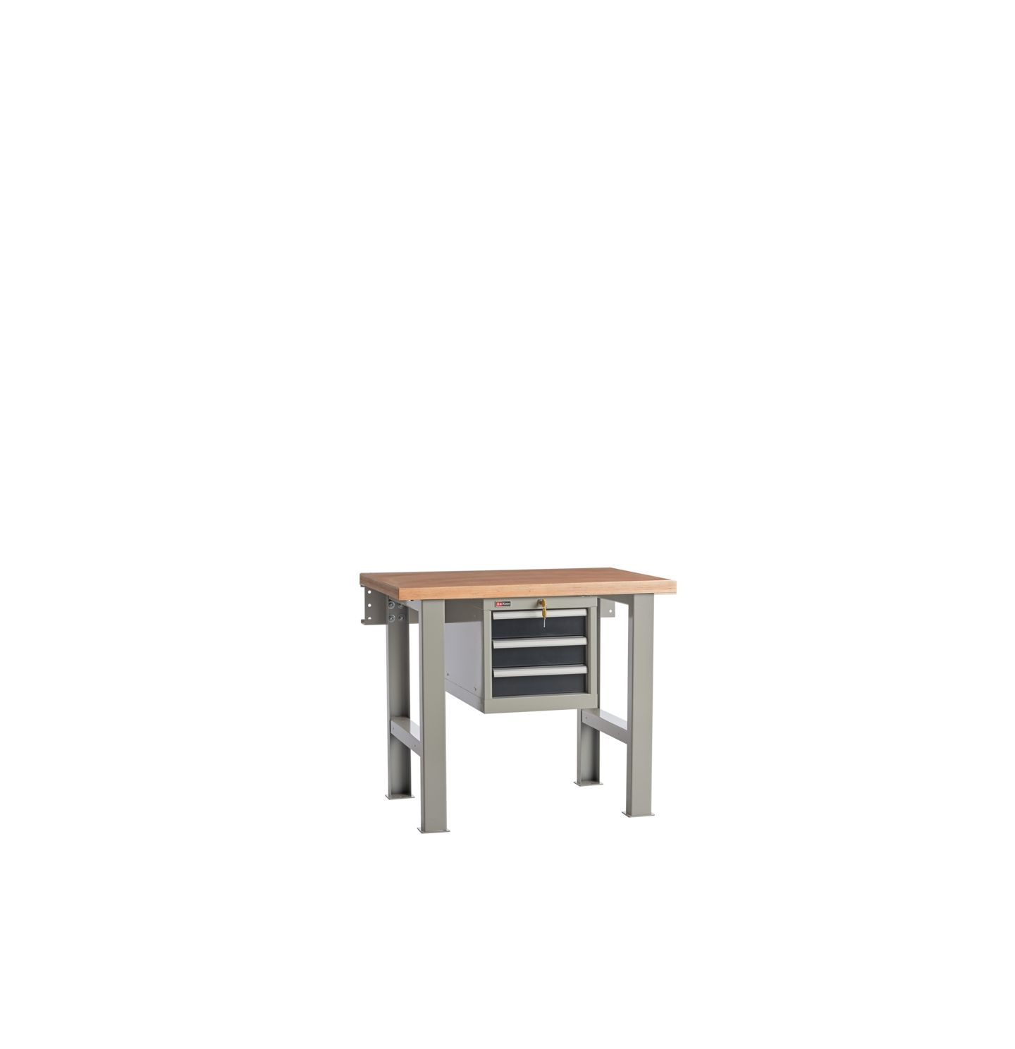 Металлические элементы верстаков окрашены эпоксидной порошковой краской, устойчивой к механическим воздействиям и агрессивным жидкостям. Ящики, дверцы тумб и стойки экрана – цвет антрацитово-серый RAL 7016, остальные элементы – цвет серый RAL 7038.